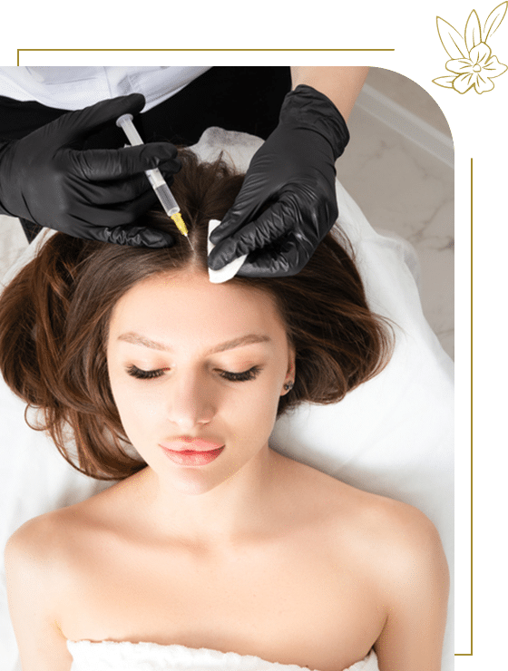 We use our Aquafirme to cleanse and detox the scalp before applying a plant-derived growth factor solution. Through ultrasound cavitation, this solution penetrates through the epidermis, stimulating the renewal of stem cells and hair follicles.